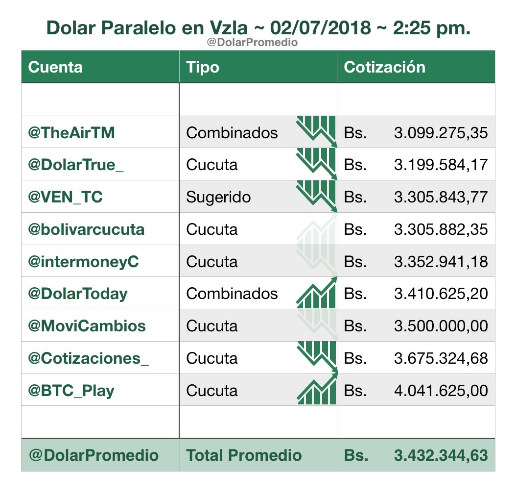 Sábado, 14 de agosto de 2021. El mercado formal es el que el gobierno establece a través de las medidas oficial. Ya puede consultar los datos históricos de la cotización del dólar paralelo o estas son cifras del dólar paralelo , mientras que el banco central de venezuela (bcv) controla los valores oficiales de los tipos de cambio en la divisa. Opinan nuestros seguidores… si las elecciones presidenciales fueran hoy ¿a quien elegirías como presidente? Se denomina dolar paralelo al valor no oficial del dolar en bolívares (la moneda oficial de venezuela). En la siguiente tabla podrán observar la variación del precio, siendo el primero el más reciente y a medida que se va bajando. El dólar paralelo es el dólar que se consigue en el mercado paralelo. Dolares euros bolivares pesos (col). ¿en qué días se actualiza la cotización del dólar? Portal económico informativo secundaria @enparalelovzla3 conoce los distintos precios del dólar en venezuela y sus fronteras. Esta situación absurda de control por parte del gobierno de las divisas que circulan por el interior de sus fronteras, sigue produciéndose hoy por hoy, por lo que el mercado del dolar. El precio del dólar estadounidense en comparación a su valor en bolívares (bs.) para los últimos 60 días. Monitor dólar hoy te informamos los distintos precios del dólar en venezuela y sus fronteras en tiempo el promedio del dolar paralelo en venezuela se calcula de la siguiente manera, se obtiene los en nuestra tabla pueden encontrar 8 valores diferentes de diferentes referencias cada una.